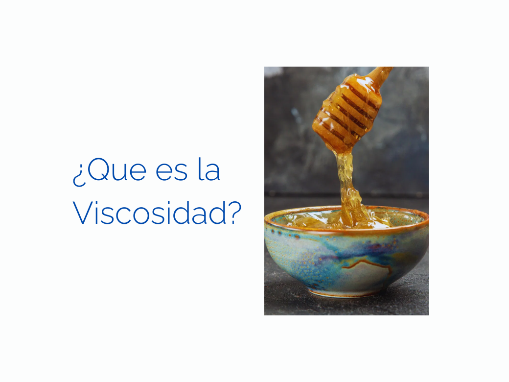 La viscosidad es la medida de la resistencia interna de un fluido a fluir. Se origina por la fricción entre sus moléculas: a mayor cohesión, más viscoso será el líquido. Por ejemplo: